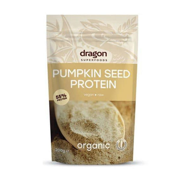 Протеин от тиквено семе Dragon Superfoods се добива от био тиквени семена чрез щадящи методи. Получава се лек за храносмилането растителен протеин, запазил минералния състав и голяма част от хранителните вещества на тиквеното семе. Предпочитан заради естественото съдържание на цинк и магнезии и Омега мастни киселини.